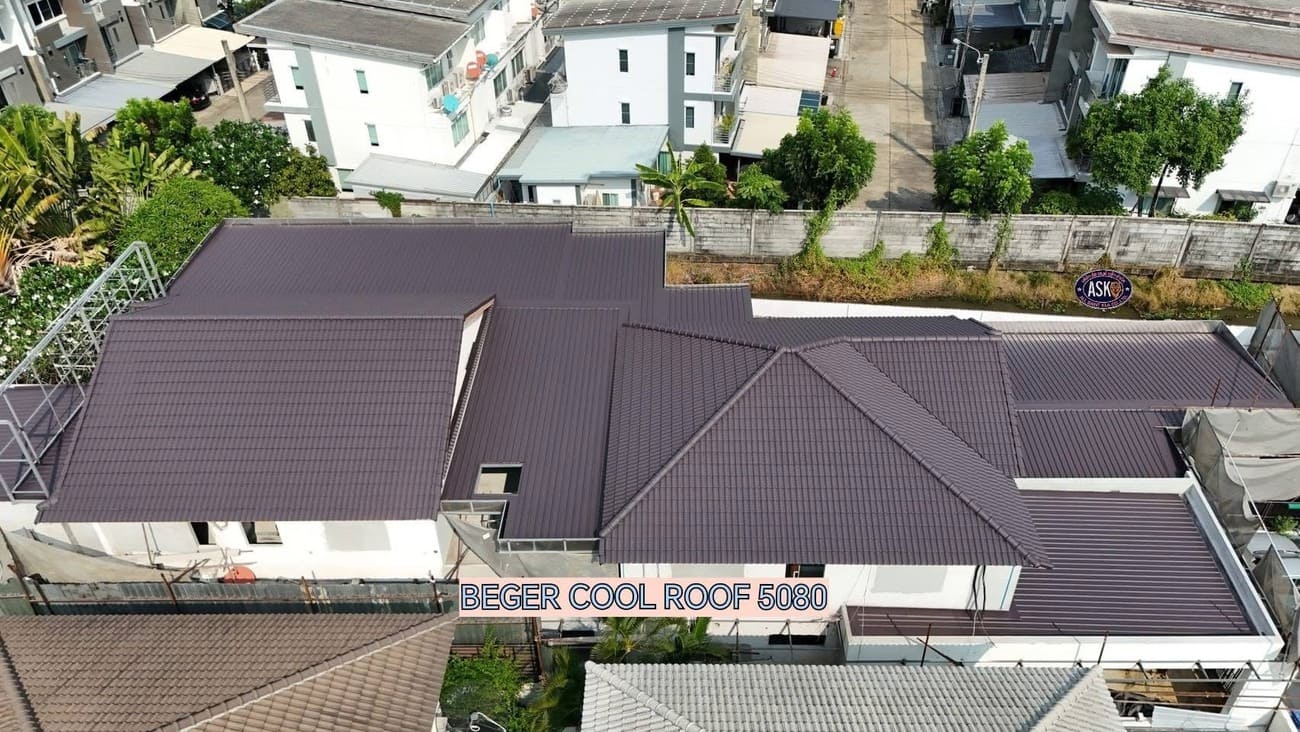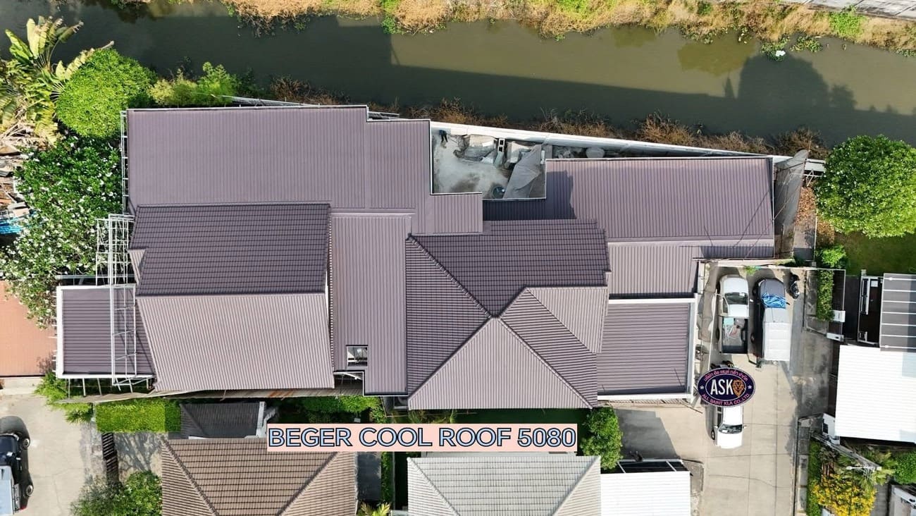 รีวิวผลงานพ่นสีหลังคากันร้อน BegerCool Roof 5080 บ้านพักอาศัย เขตสะพานสูง กรุงเทพฯ