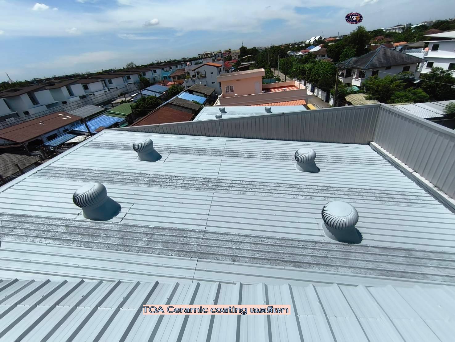 Ceramic Coating ของเรายึดเกาะพื้นผิวได้ดีเยี่ยม ไม่มีฝุ่นผง ปลอดภัยต่อผู้อยู่อาศัย ป้องกันคราบสกปรก ตะไคร่น้ำ เชื้อรา ช่วยยืดอายุหลังคาและผนังอาคาร