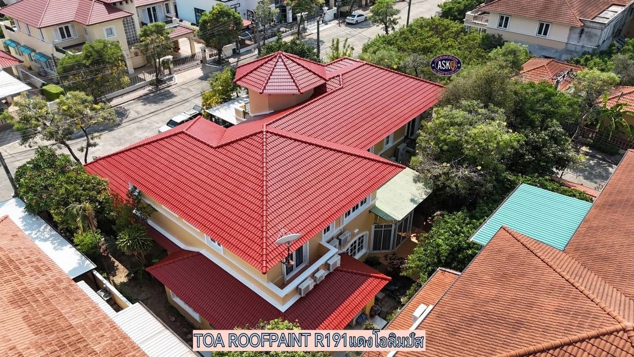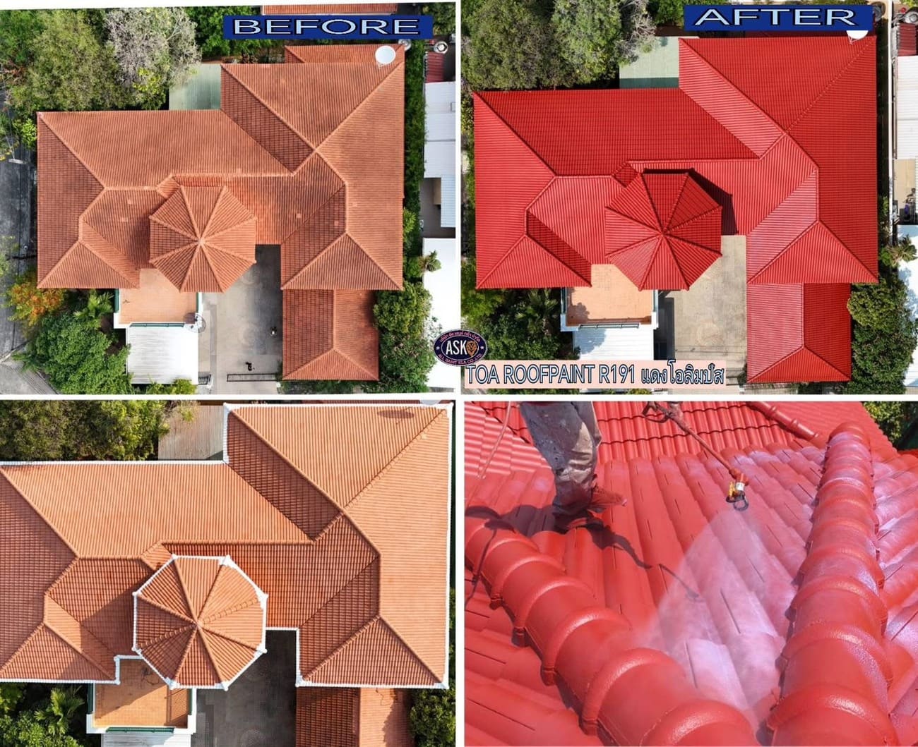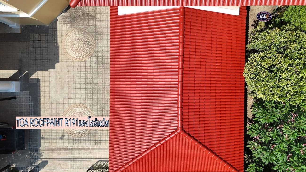 “โดดเด่นสะดุดตาและสง่างามกว่าที่เคย! เปลี่ยนหลังคาที่ซีดจางและดูทรุดโทรมให้กลายเป็นจุดเด่นของบ้านด้วยบริการ พ่นสีหลังคา TOA Roof Paint รหัสสี R191 เฉดสีแดงโอลิมปัส (Olympus Red) จากทีมช่างระดับมืออาชีพ ASK (All Saint Kla) เติมเต็มความสวยงามหรูหราในสไตล์ Classic & Contemporary พร้อมปกป้องรังสี UV และจบปัญหารั่วซึมได้อย่างสมบูรณ์แบบ”