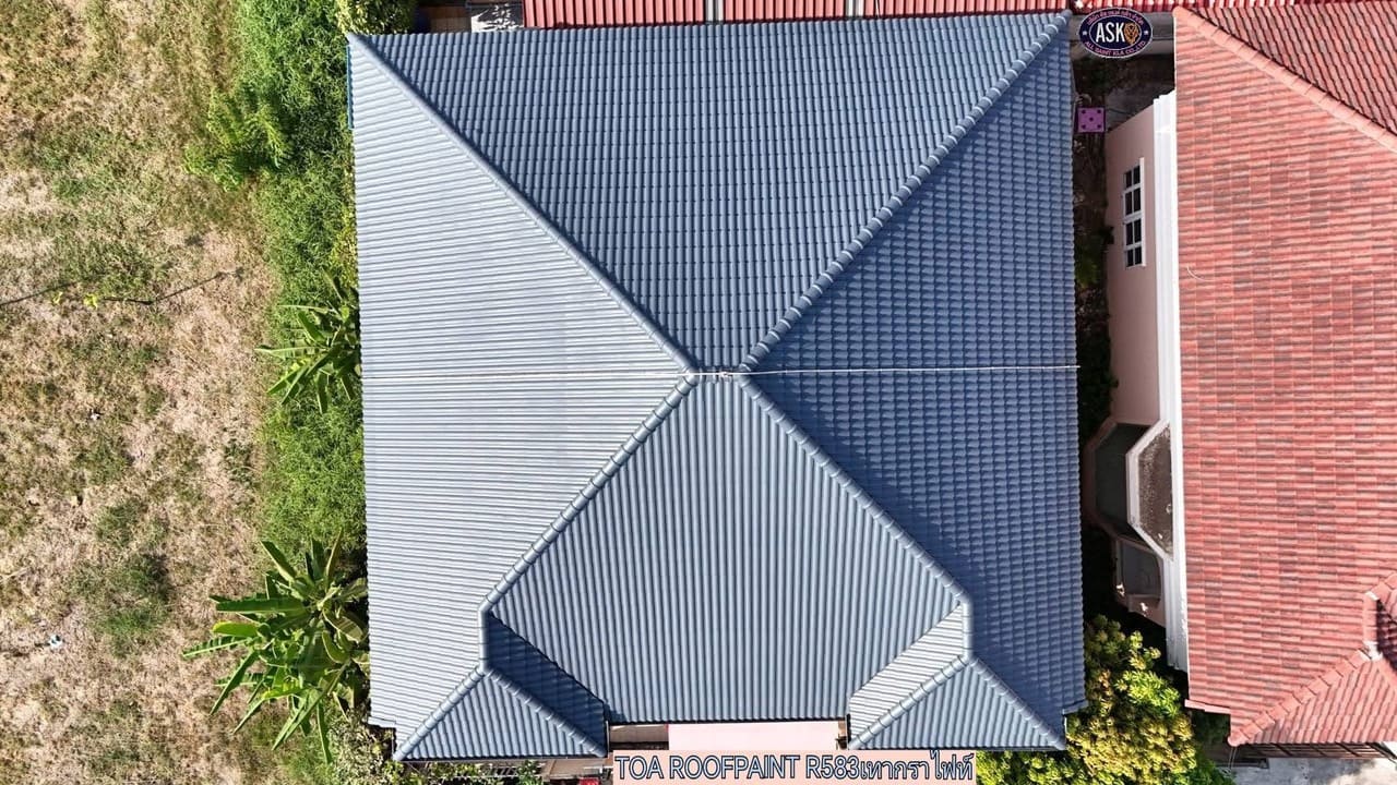 “เปลี่ยนหลังคาที่ซีดจางให้กลายเป็นผลงานมาสเตอร์พีซที่สะกดทุกสายตา! ด้วยบริการ พ่นสีหลังคา TOA Roof Paint รหัสสี R583 เฉดสีเทากราไฟท์ (Grey Graphite) จากทีมช่างระดับมืออาชีพ ASK (All Saint Kla) คืนความสวยงามสไตล์ Modern Luxury ให้บ้านของคุณดูพรีเมียม โดดเด่น และทนทานต่อทุกสภาวะอากาศ”