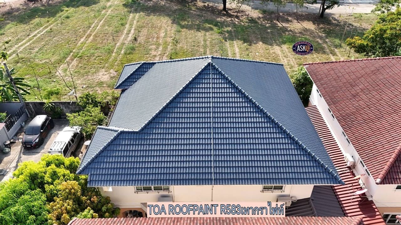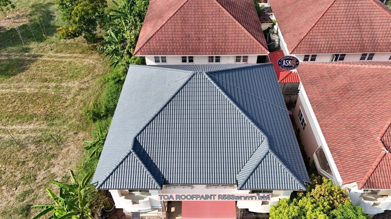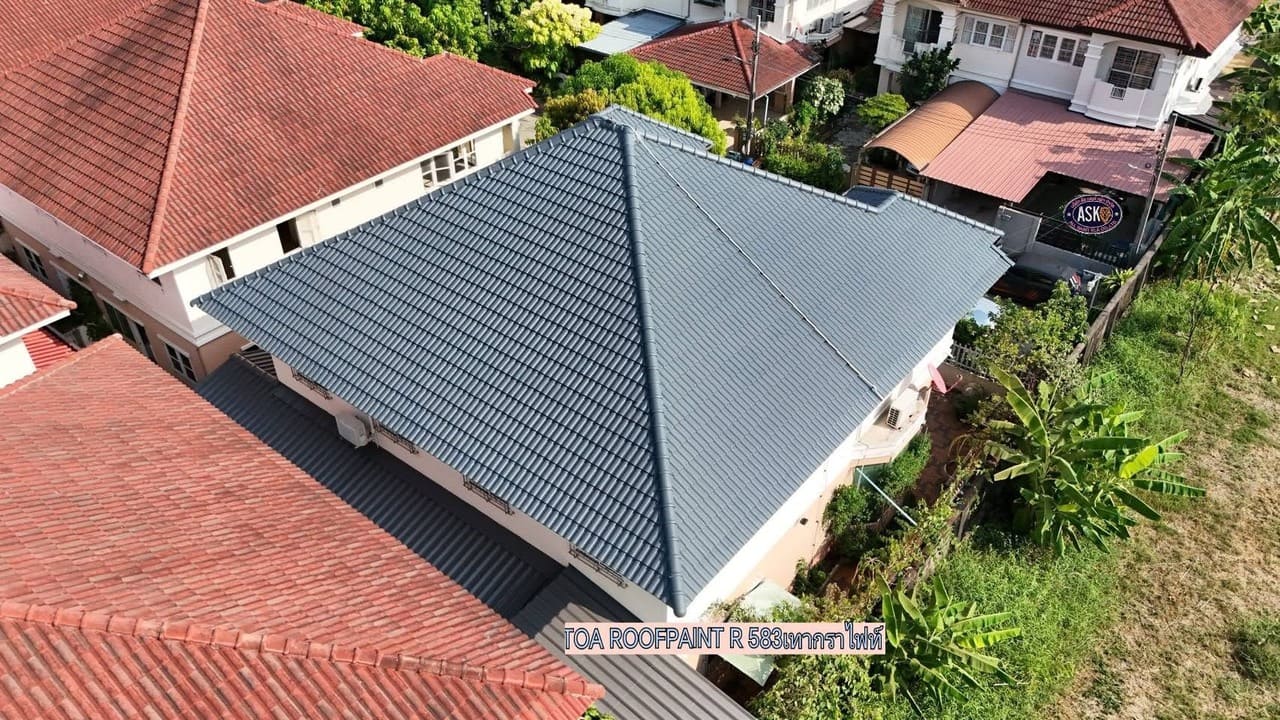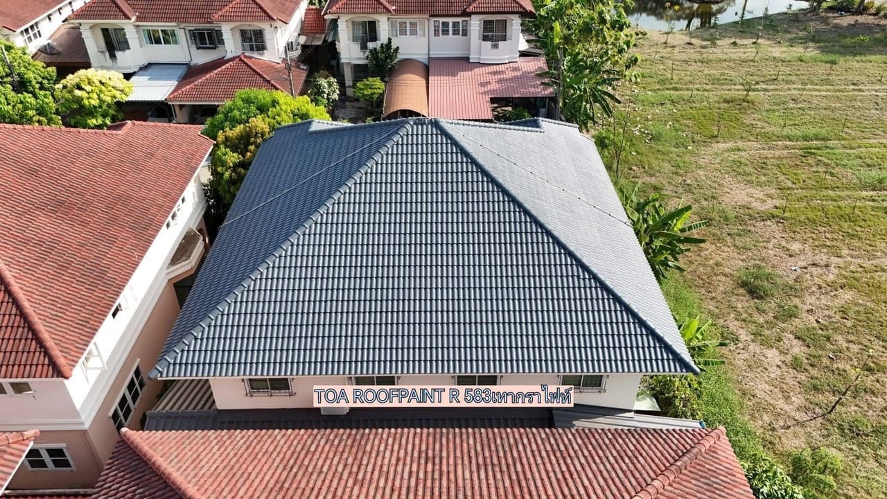 รีวิวผลงานพ่นสีหลังคา TOA Roof Paint R583 บ้านพักอาศัย เขตคลองสามวา กรุงเทพฯ